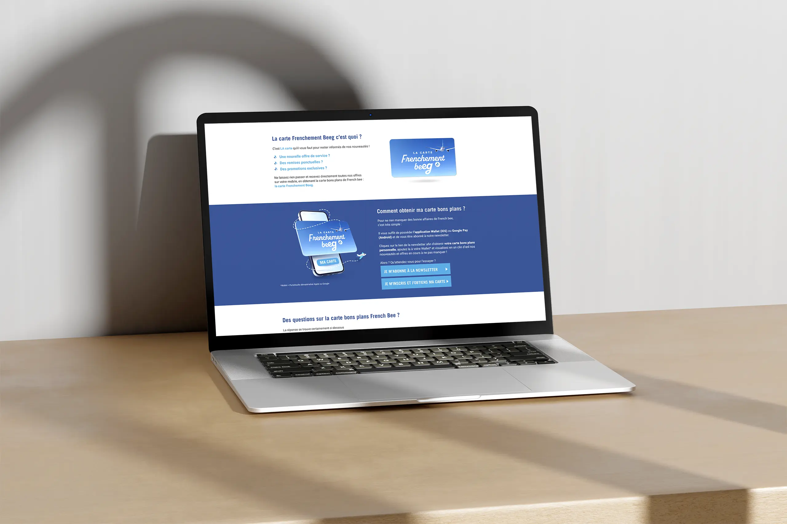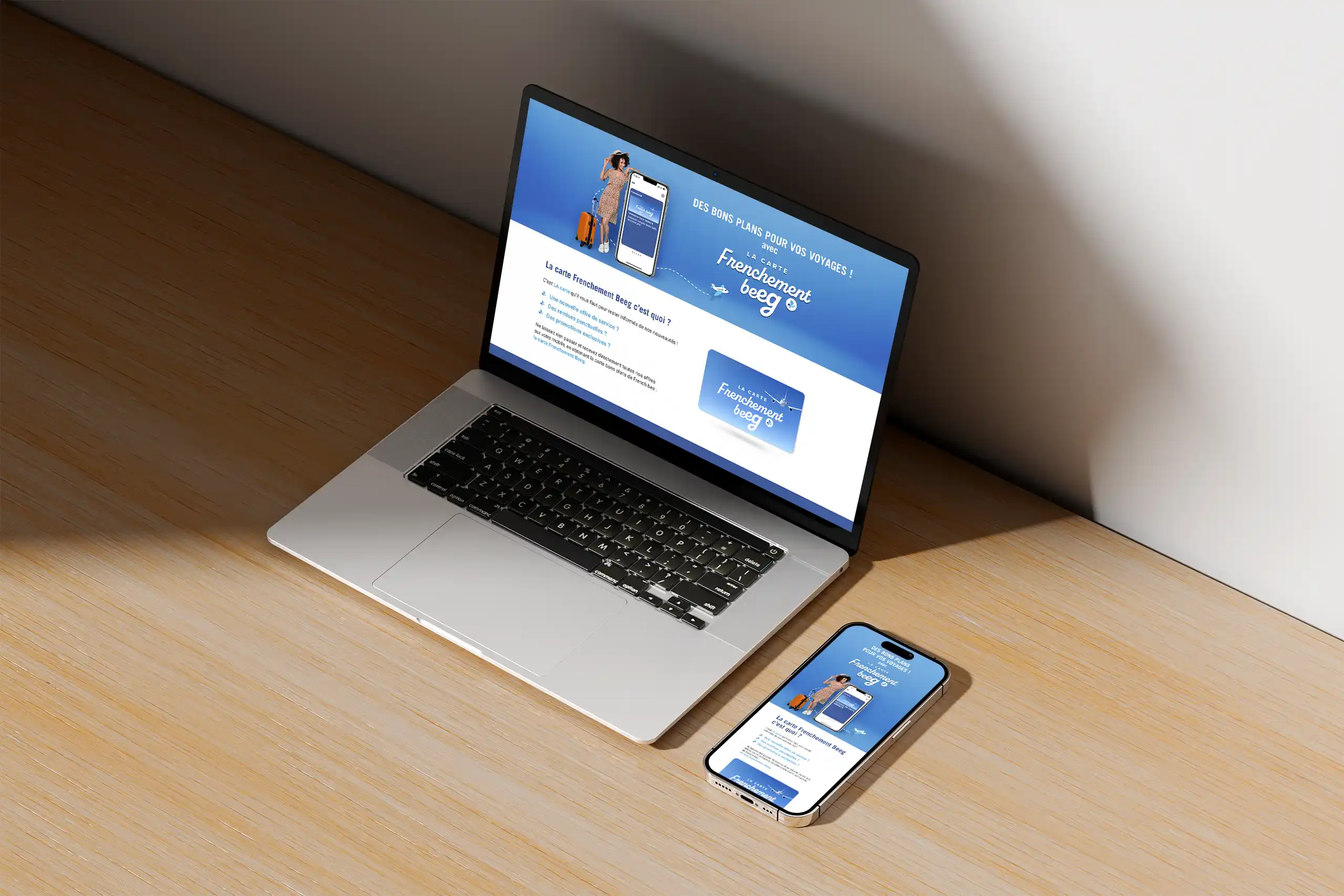 Création Élaboration d'une landing page pour promouvoir la carte bons plans, en respectant la charte graphique de la compagnie, avec un design frais et dynamique qui invite au voyage.